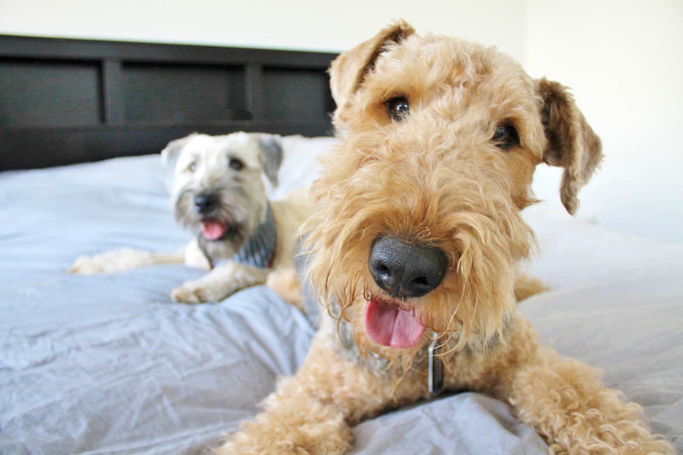 Hi! I'm Georgie (that's my little brother Guinness in the back). I was very shy and timid when brought into my new home, but over time I became more comfortable and now can be quite silly! I love to chase and play with tennis balls, and try to catch flying bugs, leaves and anything that moves outdoors!
