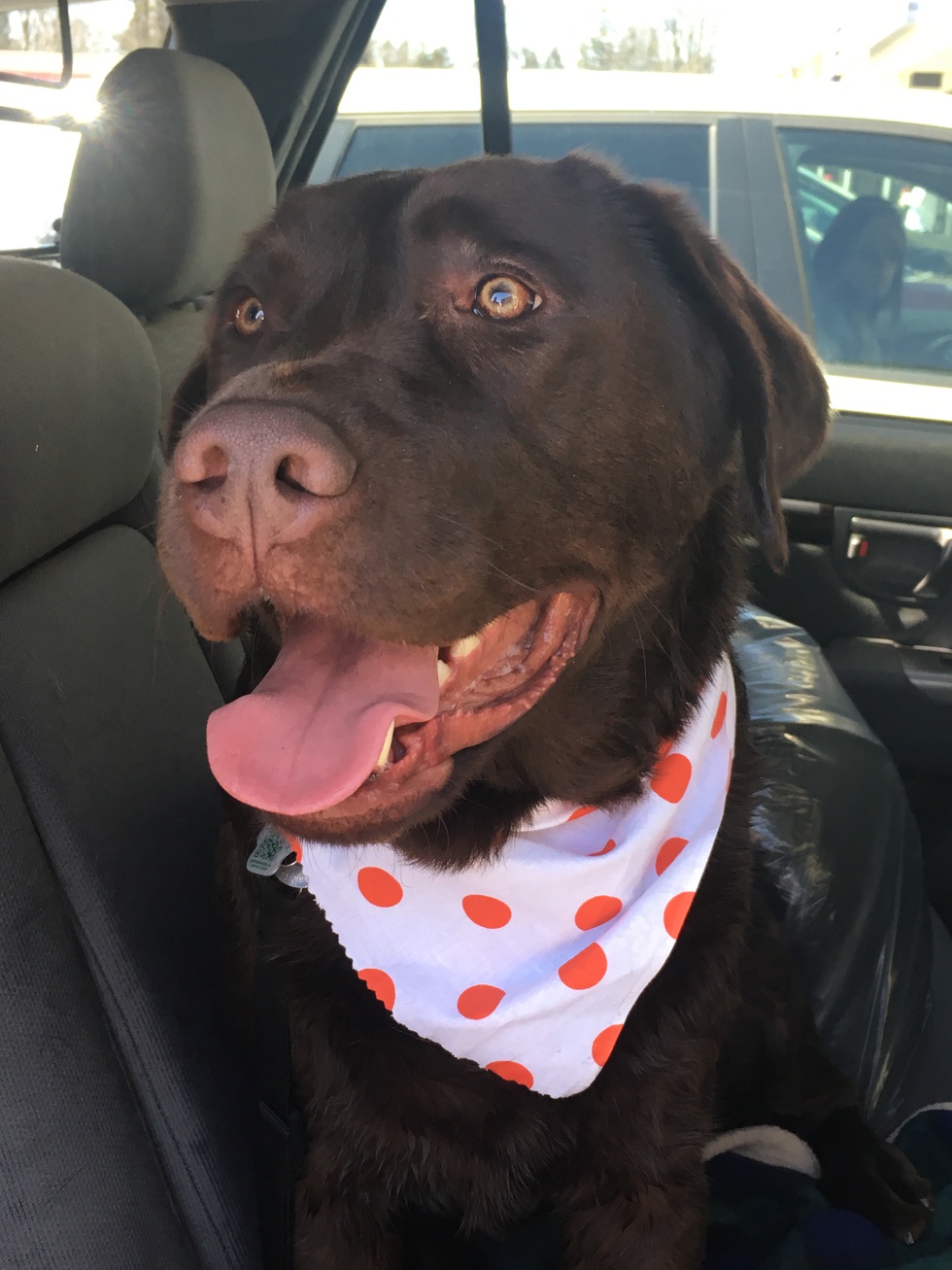 Lincoln is a Chocolate lab - loves people, other dogs and water. He also will give you a high 5 or a paw and most likely bring one of his toys to you when you visit. He may bark when people come to the door but then he'll lick them to death. He's a big suck and loves hanging out on the couch or watching a ball game.