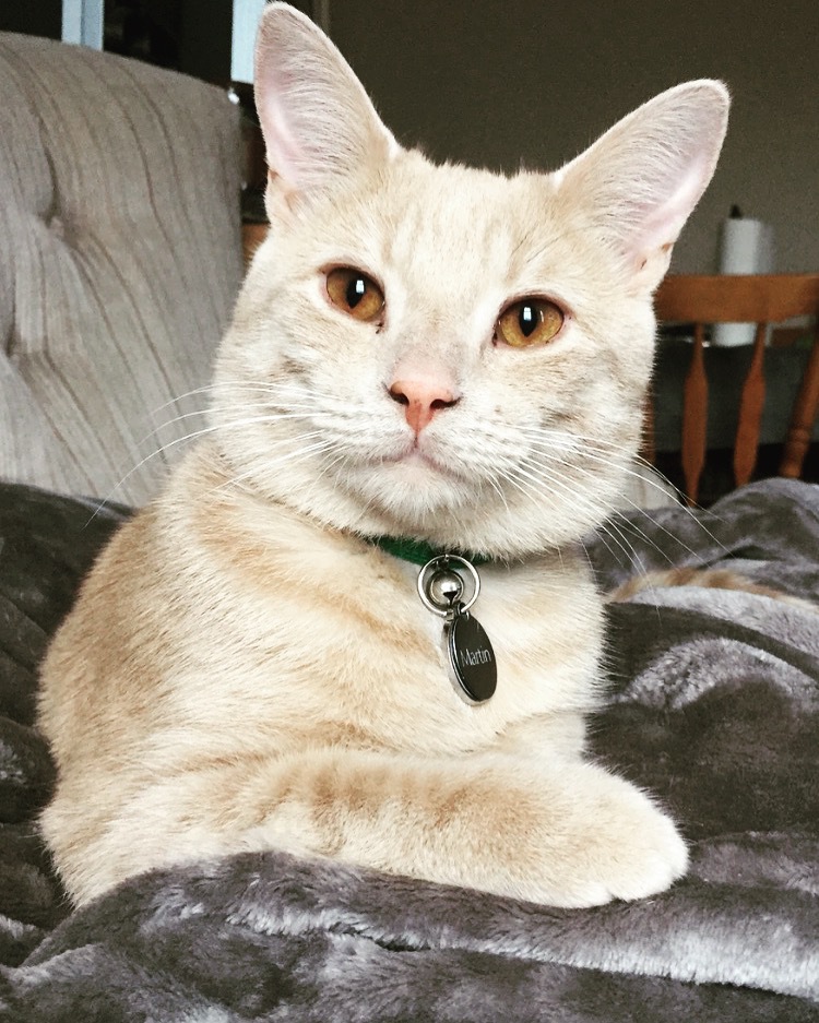 This little Buff Tabby, Martin, wins the heart of everyone he meets. He’s affectionate and gentle. When he gives you one of his signature kisses he’ll melt your heart. Martin’s favourite activities include being perched in a window, watching cars drive by, and seeing his squirrel friends. A Guelph Humane Society rescue himself, this generous guy wants to help give back to his cat-mmunity by starring in the GHS calendar and spreading happiness and love.