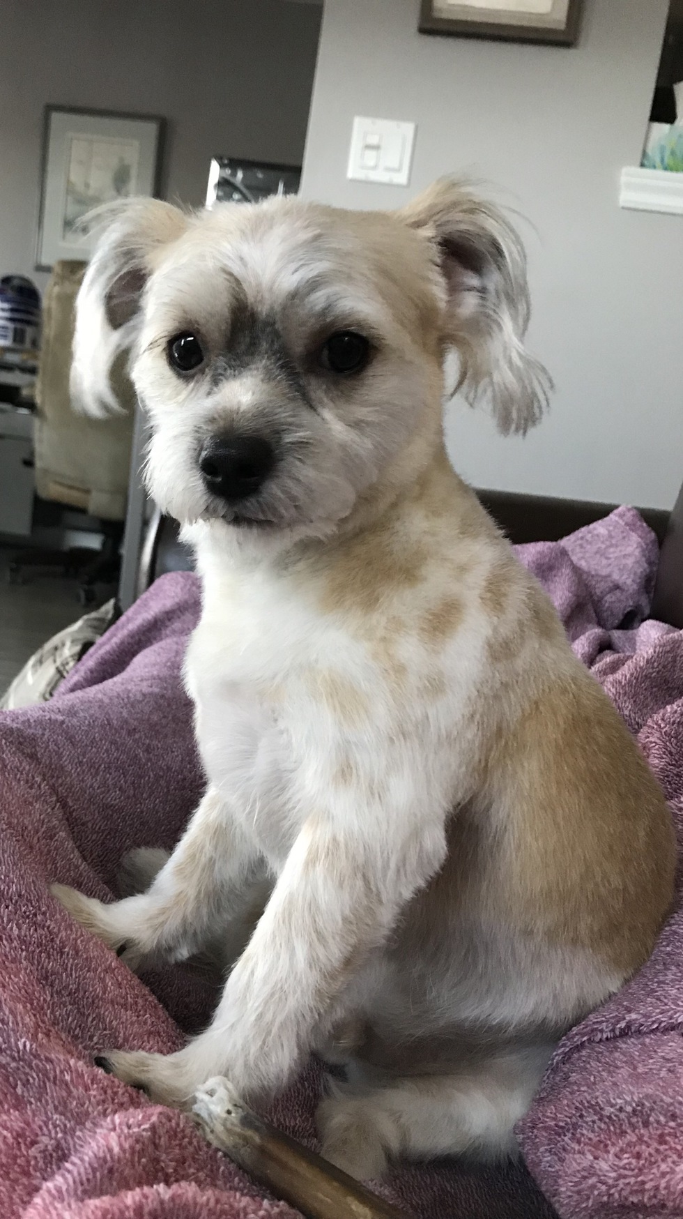 Morgan is a big dog trapped in a small dog’s body. He loves to run and play with the big dogs. He has a huge appetite. Luckily he is small though because his favourite place to be is on his mama’s lap.