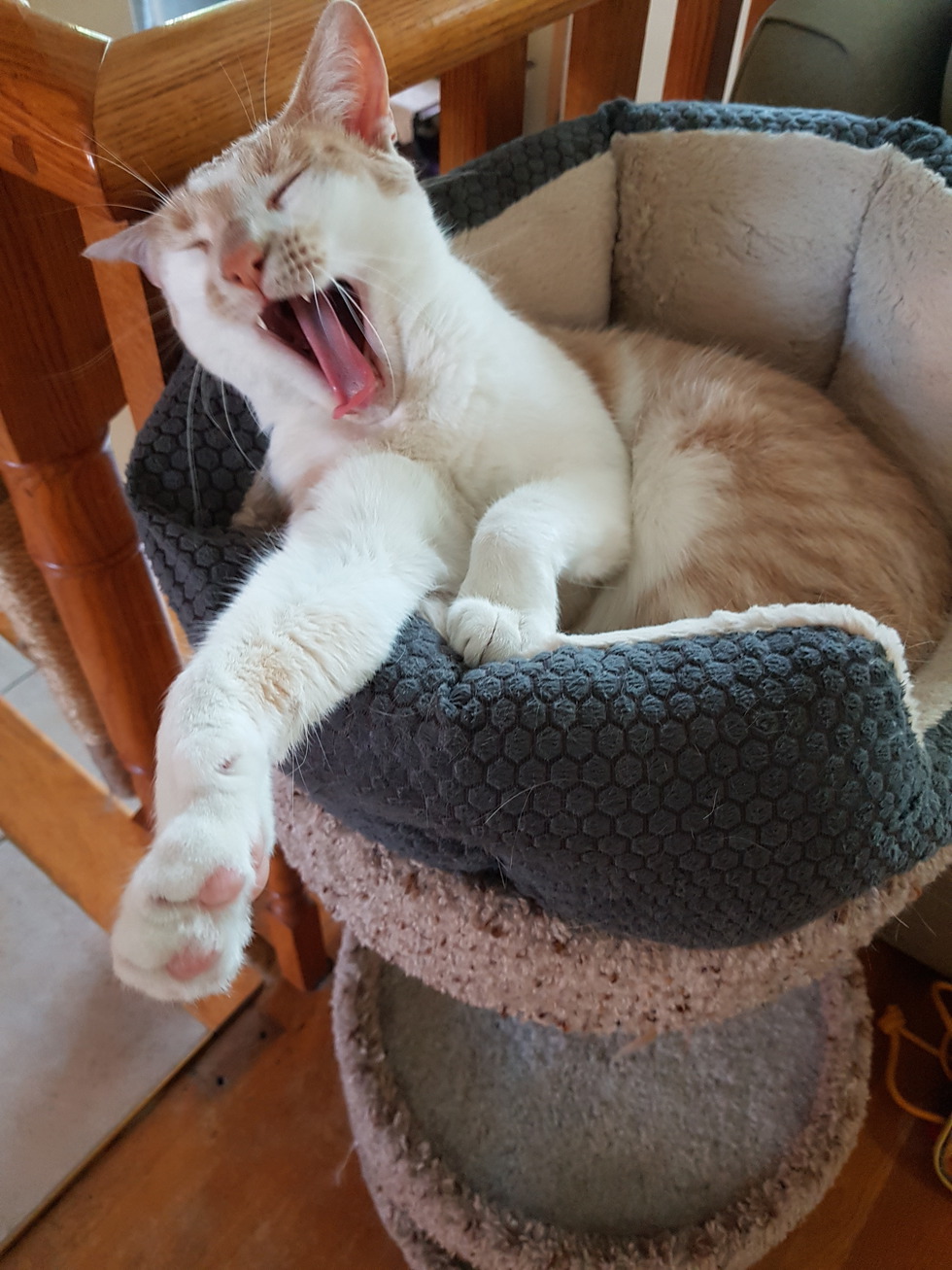 We randomly showed up to a PetSmart Adoption Weekend and saw that there was only 1 kitten remaining. It was kind of nice not to have to choose out of a sea of cats. Turns out that we got the best of the bunch! Well, that is our opinion anyways. We filled out the paperwork, were interviewed and were accepted to be Benny's new family. When everything was said and done, we noticed that the store was closing. Perfect timing ... it was meant to be! He is so beautiful; inside and out.