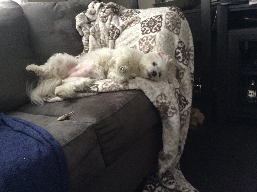 We adopted Chloe last November to be sisters with our other 2 dogs Abby and Tia. It was kismet that we had to have Chloe for both Chloe and Tia are exactly the same age by 2 days apart. Even though we are still working out her issues she is so lovable always carrying her stuffed squeaker in her mouth and rubs it on our faces. She loves to watch TV with us and knows by the music what commercials has other animals for her to bark with a tail wagging.