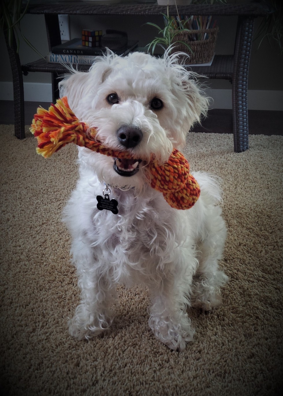 Chili is one happy-go-lucky pup! He was adopted in 2015 from the Guelph Humane Society and now lives in Wiarton. Chili loves retrieving anything at the dog park and thinks nothing of cavorting with dogs three times his size. He even takes short sails on a boat at the Lion's Head Harbour! Chili can't help chasing squirrels and cats. After all, he does have terrier in his blood! Chili knows a few tricks, including "dance" and wishes he could meet his brothers and sisters one day, all of whom were adopted in Guelph. Where are "Butter" and "Nutmeg" he wonders?