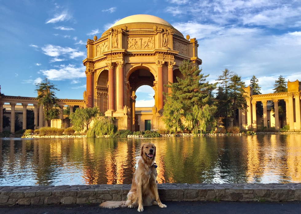 Image descriptionJambo on a road trip to San Rafael to see his sister Nalia graduate - making a stop at the Palace of the Fine Arts! Golden retriever, Jambo, sits in front of the Palace of Fine Arts in San Francisco.
