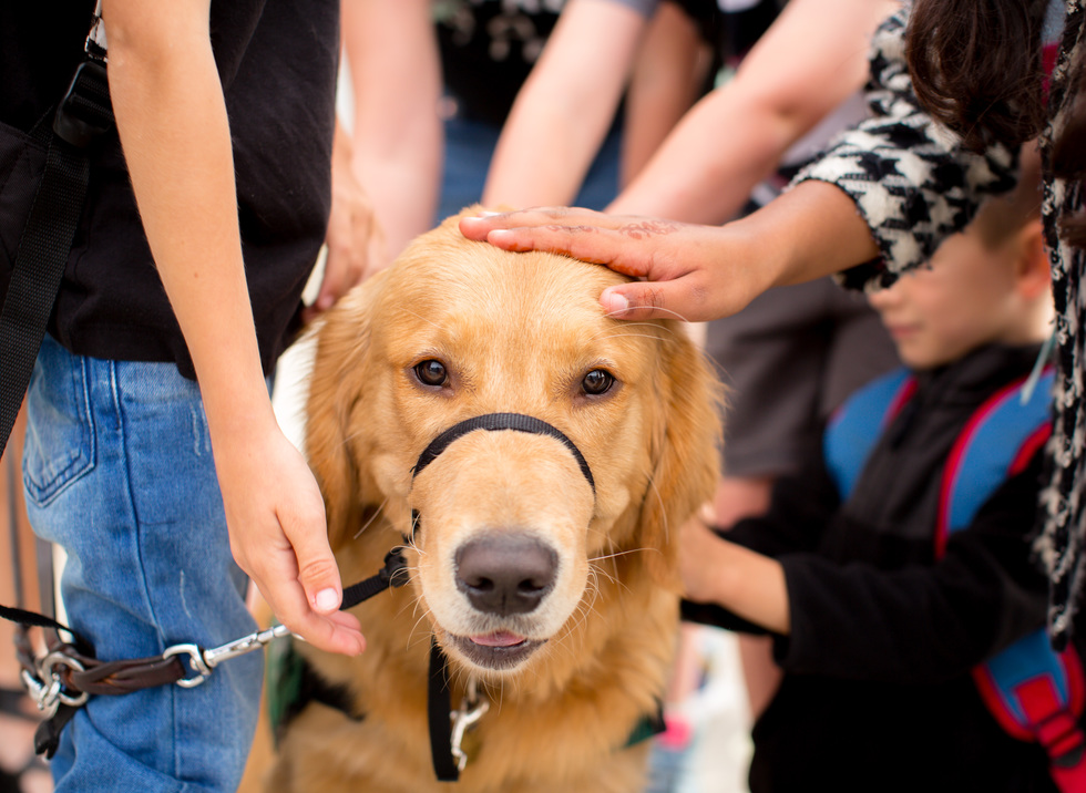 Fender as a puppy in training at an School Assembly in Oak Grove Elementary School, in Aliso Viejo, CA
