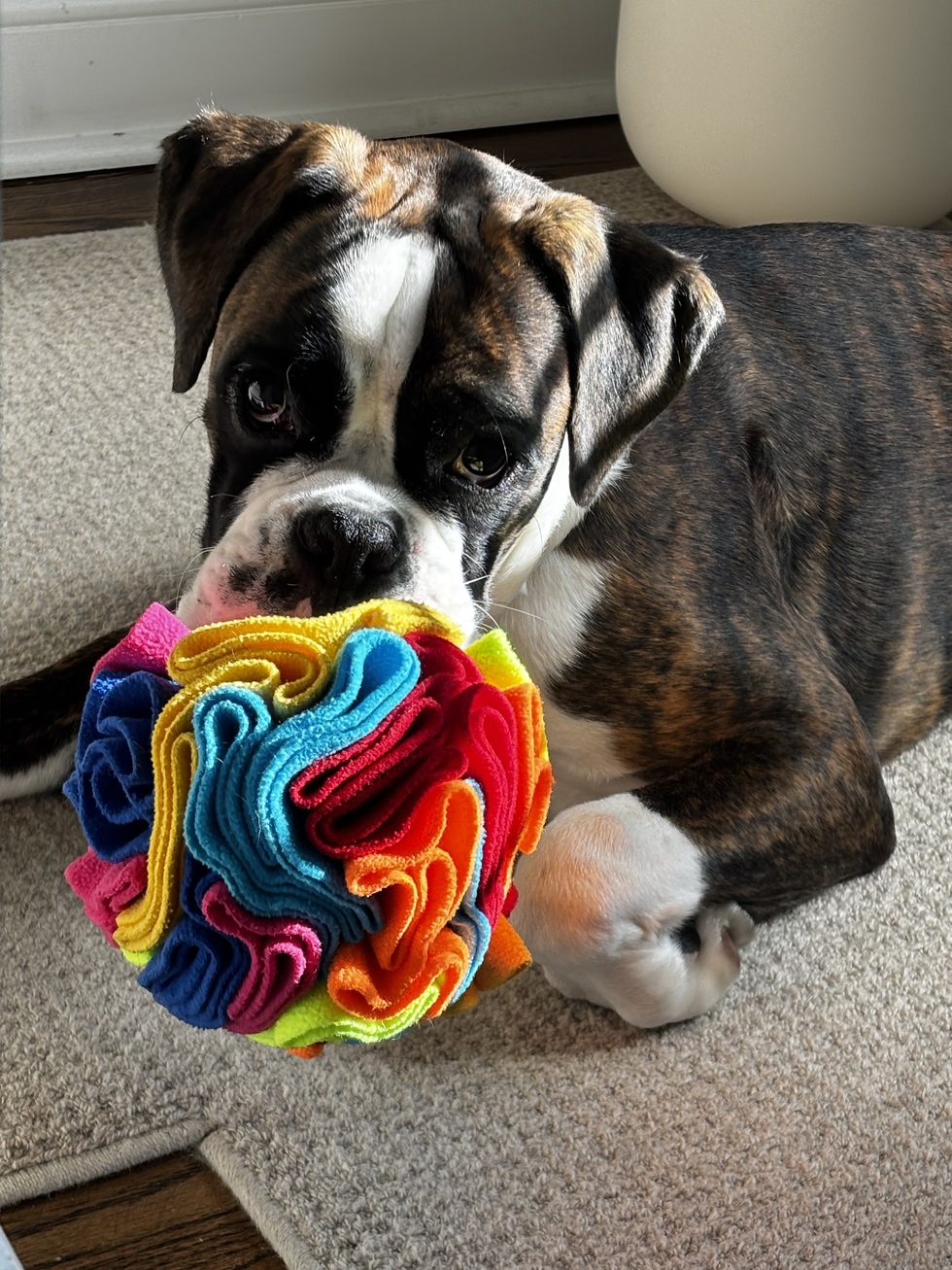 At seven months, Bretzel already thinks he’s Haddonfield’s Top Dawg. Our brindle boxer greets every neighbor (human and furry) expecting all their attention. He’s all zoomies, wiggles, and zero personal space. Bretzel’s still working on his commands, but is 100% fluent in joy.