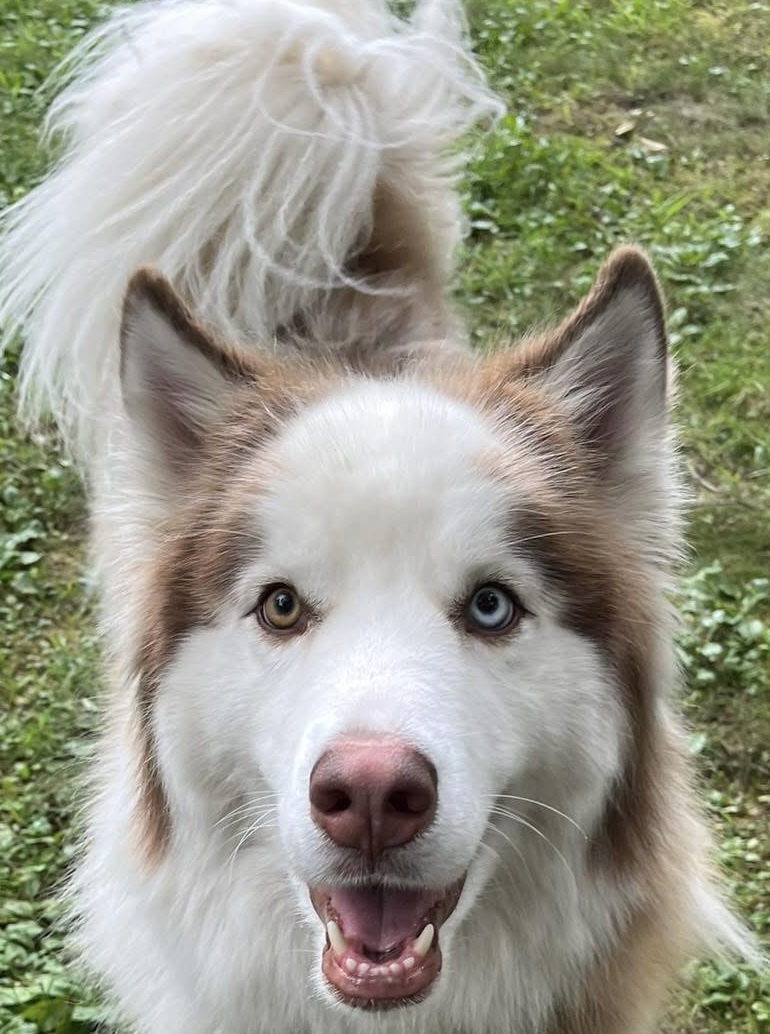 Our Mowgli is a HEART rescue. We saw his picture on their Facebook page and fell in love. Mowgli was a little over 5 months old and had just arrived to his foster in North Carolina. He’s a beautiful bi-eyed, Piebald Husky, with the most spectacular waterfall tail. He’s a wonderful boy and is loved by everyone he meets. Thank you to HEART for rescuing our Mowgli ❤️🐾
