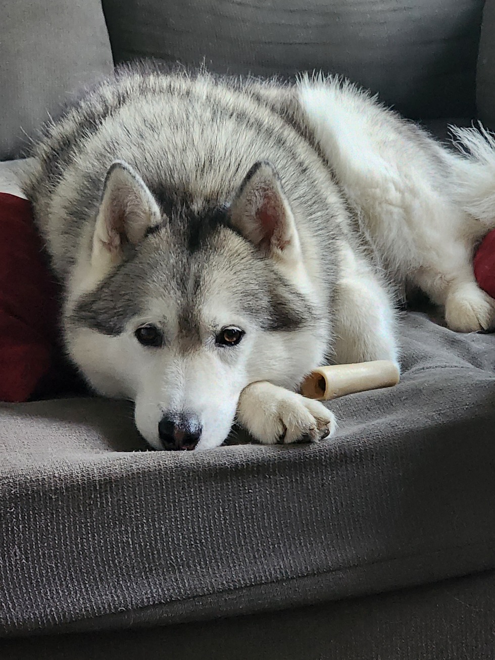 Keelo was rescued from Homeward Bound where he had been living in a kennel for a year. He had been surrendered twice and was a handful. We thought we made a huge mistake, but then Covid happened and I was teleworking which allowed me to work with him everyday. I fell in love and he has been my best friend since. Even though he likes to sass me, he is a goofball and I have become his emotional support human.