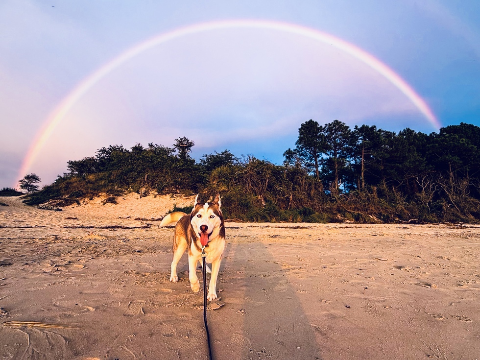 This picture of Sven was taken on his very first camping trip with us at the Chesapeake Bay in Cape Charles, Virginia.