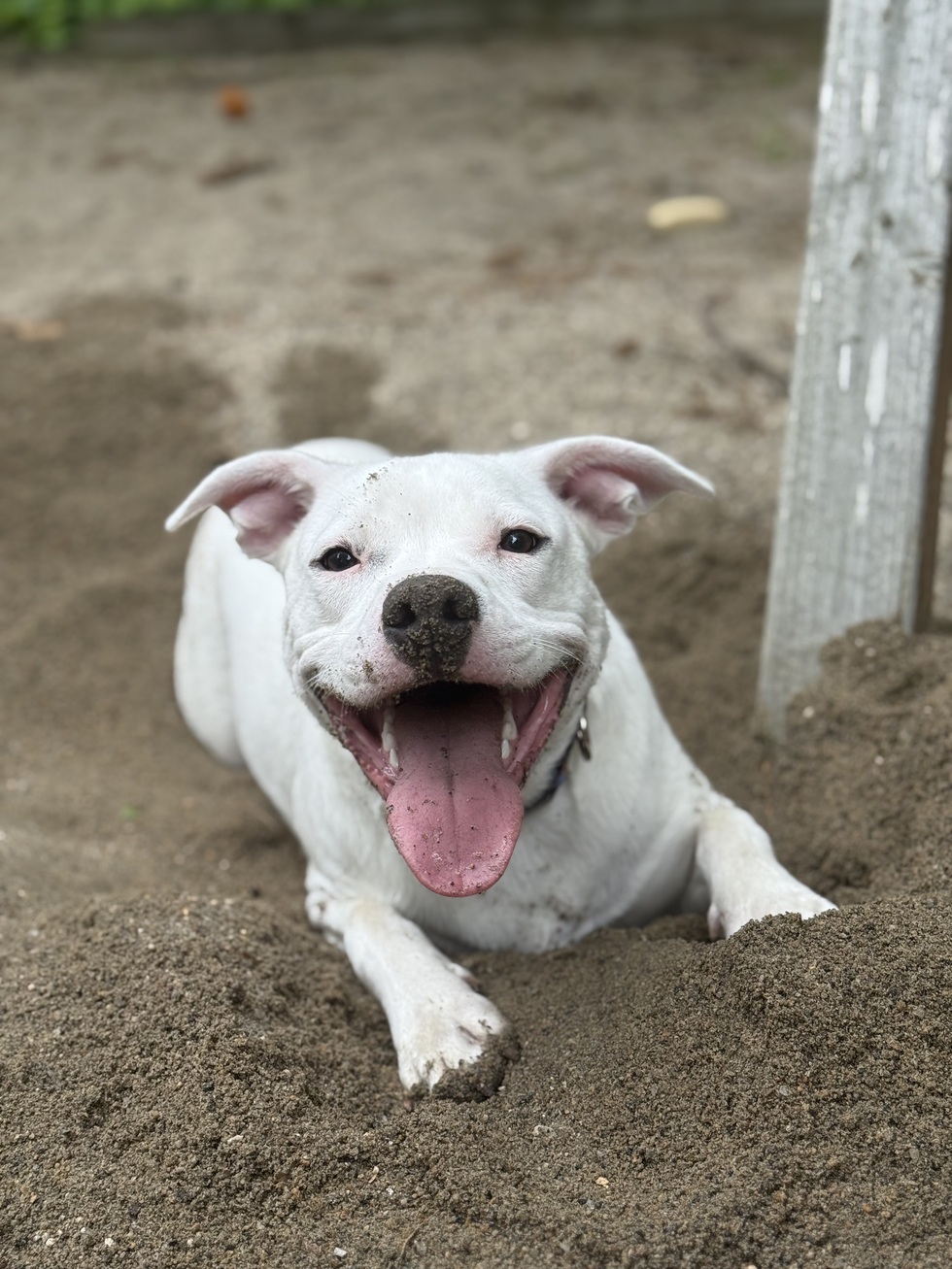 Casper is a 1 year bully mix bread. He loves to eat, chew on socks, run around his big back yard and snuggle. He enjoys sunshine and driving his 14 year old sister, Cami, crazy.