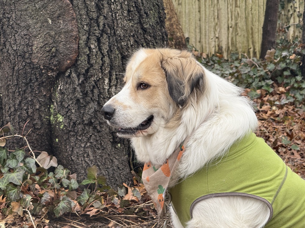 Boomer is a rescue from Kentucky. He was found abandoned in a creek trapped under a tree. They believe he was left to die by a breeder. He’s a full bred Great Pyrenees with a bent tail from the tree :( The adjustment to our home took about 4 months as he was not trusting at all, rightfully so. Two years later, he is the kindest, most loyal protector & friend. We love our Boomie!
