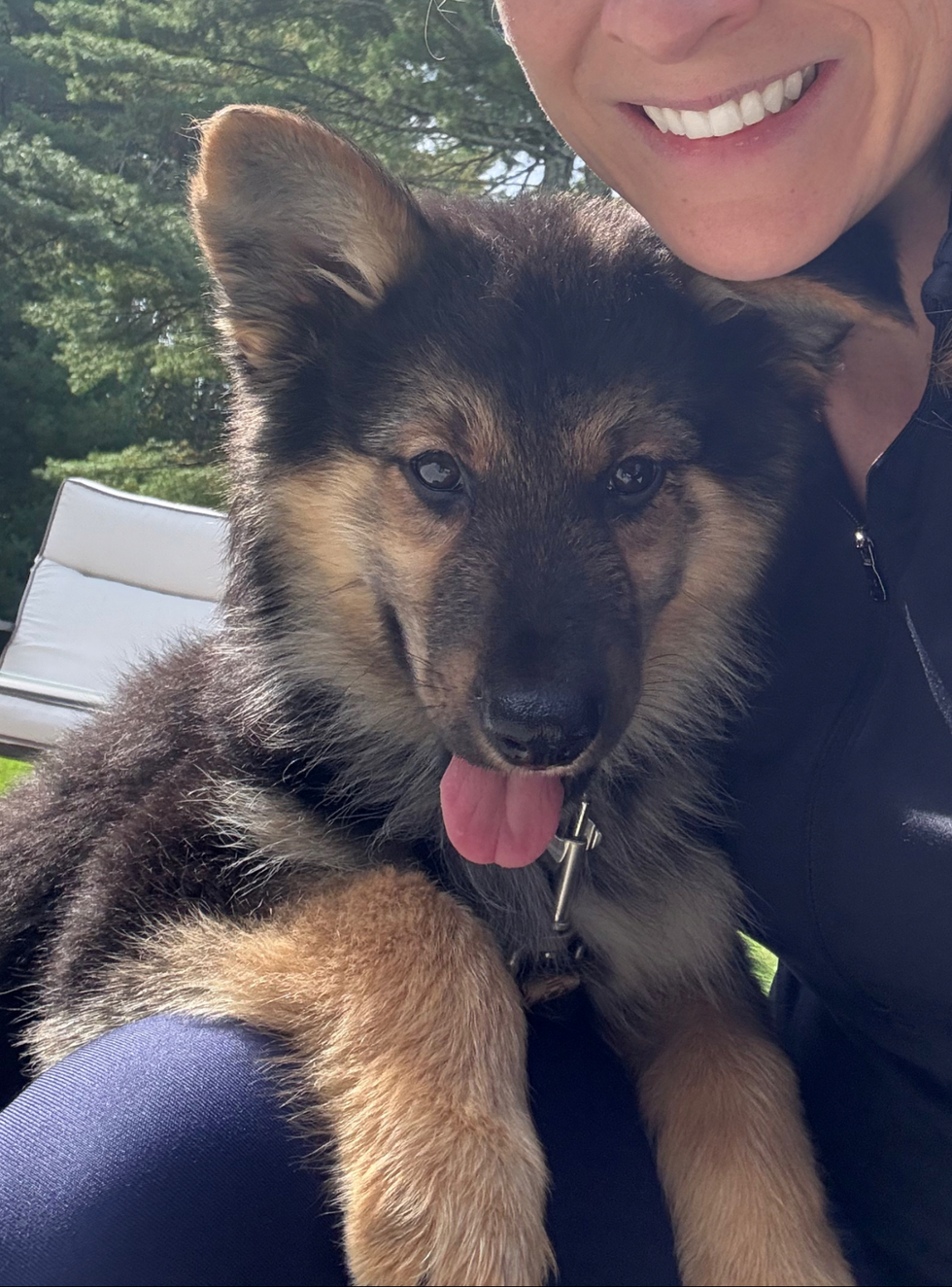 Remington is a German Shepherd/Australian Shepherd mix, adopted from Mississippi. He loves to learn and already knows commands (sit, stay, come, roll over) and is potty and crate trained! He loves sticks, belly rubs, and apples. He hops like a kangaroo when he is chasing a blowing leaf or a stick.
