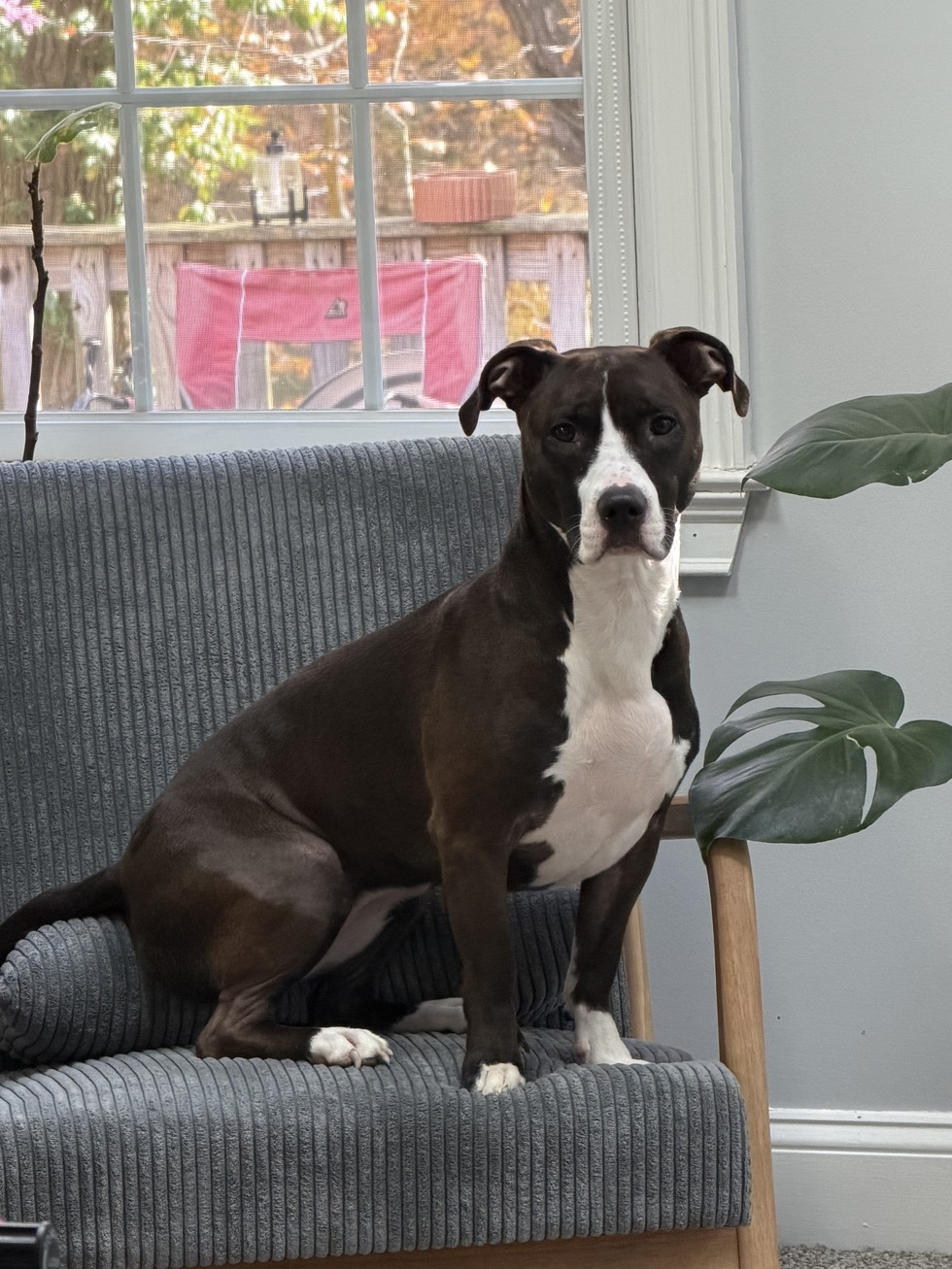 Leia (lady Chonk if we’re using nicknames) is the sweetest little Beagle Bull you’ll ever meet. Her mission is to spread love, give kisses, and demand treats. She believes all humans were put on this earth to give her attention and cookies. Leia can often be found snuggling on the couch, attempting to hunt squirrels, or plopped down next to the treat jar waiting for someone to notice that she needs a treat, simply for existing. Leia is the president of the Warwick squirrel hunting club, she is very unsuccessful, but is committed to trying.