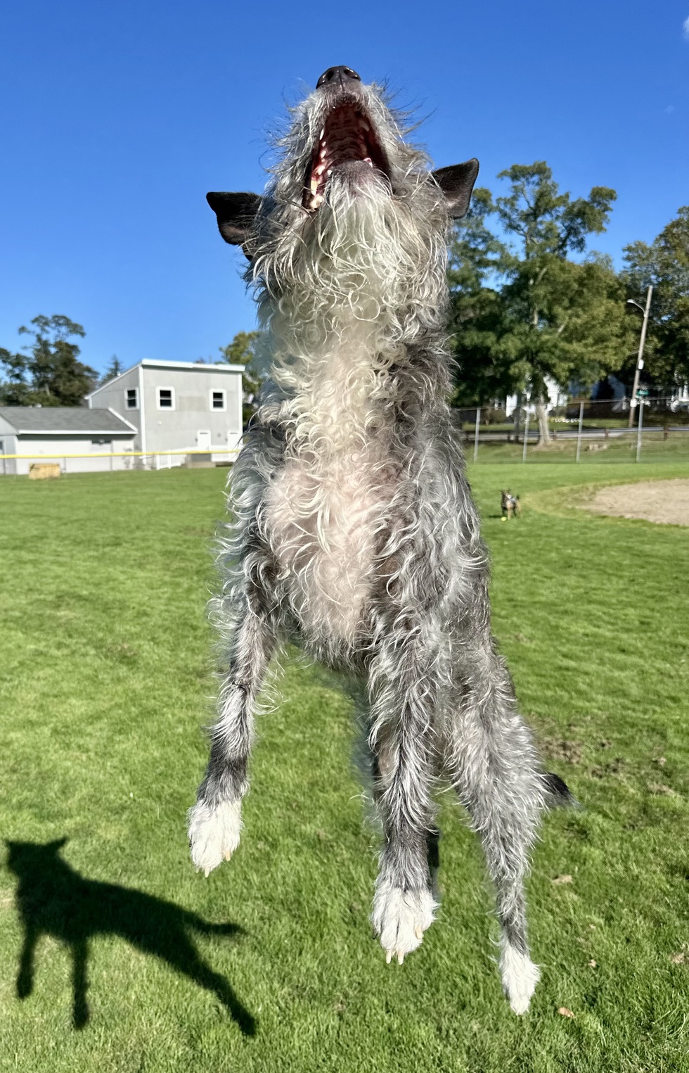 Cokie is a rescue from Texas, and she’s a scruffy, scraggly, flying wonder who is everybody’s best friend. Her giant ears make no sense and her whole body is a beard and she’s perfect. She’s happy and smart and crazy and the fastest dog I’ve ever met, 500 pounds of personality in a 30 pound doggie bag!