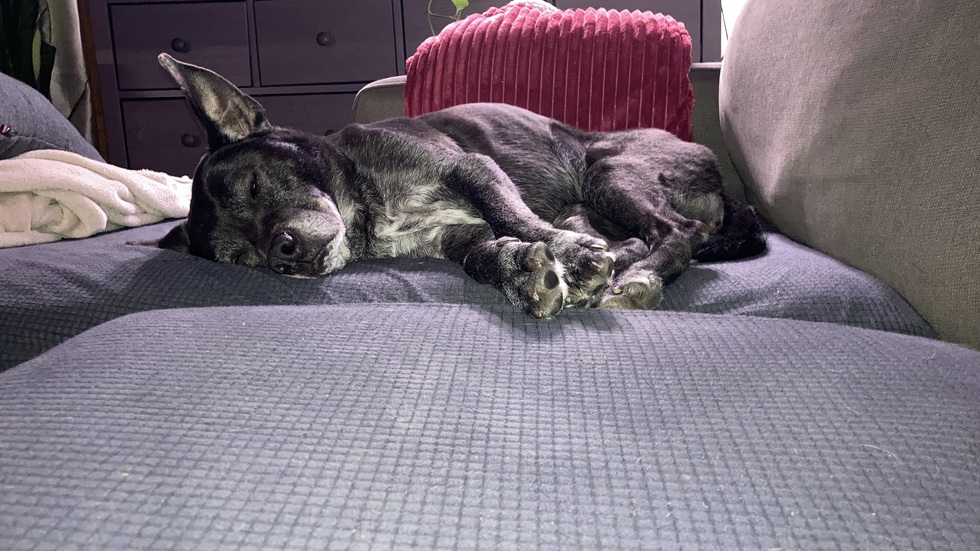My sweet Maebug is 15 years old . She came to us afraid of her own shadow and blossomed into the most lovable pup. Even in her old age she loves to come in for the sweetest snuggles to tell me she loves me.