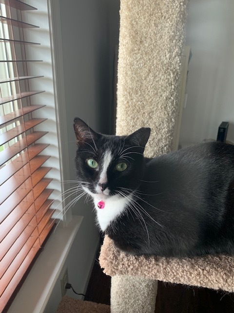 Gracie is a 3 year old kitty who is very vocal and loves to play with her brothers. She loves to sit on her tall scratch post and loves to hang out in the bathroom when others are in there. She also loves to play with her long shoelace.