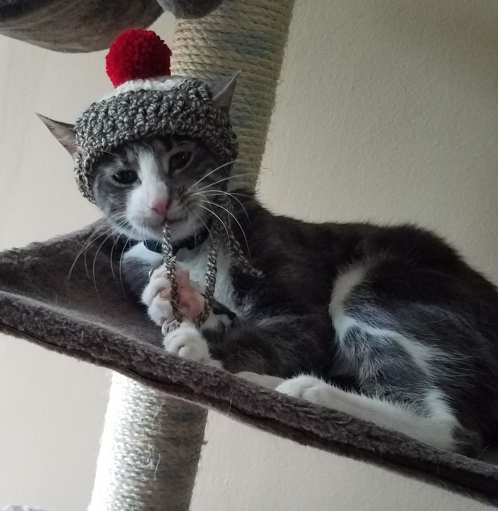 Thor is a fun-loving, caring and sometimes mischievous 11 month old kitten. Thor loves to help his humans with chores such as, dusting, making the bed, and folding laundry. Understandably, Thor is not a fan of the vacuum cleaner. Thor loves to show off and wear his various t-shirts and hats around the house. After an exhausting day of cleaning and being a Vogue model, Thor loves to unwind and look out the window to watch birds and squirrels. He also loves to play with his toy mice or soccer ball. He also loves to relax with his humans on the couch and watch TV. His favorite shows includes Reality TV, Disney movies and any show that has big explosions.