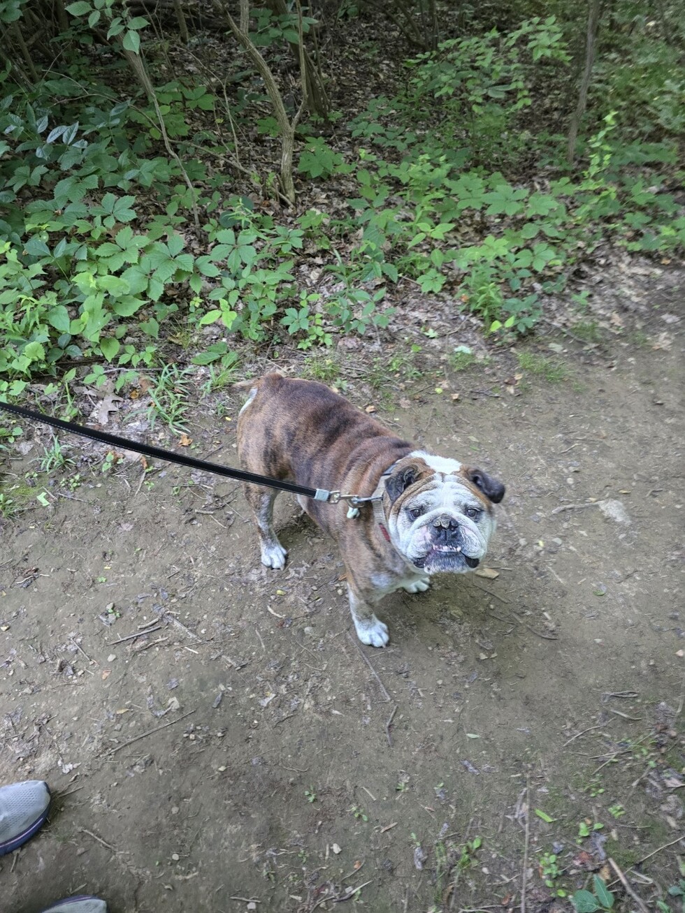 Riggs is a, soon to be, 9-year-old English Bulldog who enjoys short walks and long naps.