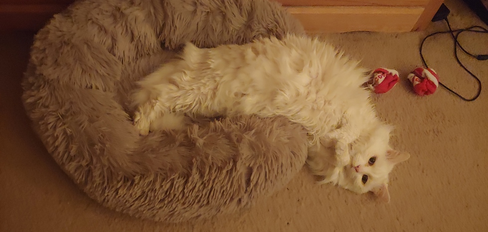 She's a 15 year old lovley old lady. Apparently prefers to use her bed like that lol, whatever works.