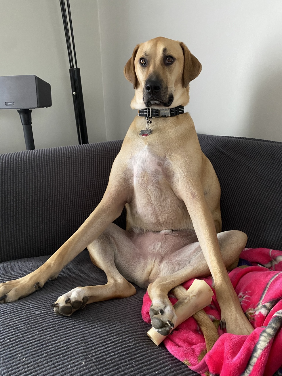 Moose is a rescue from a kill shelter in Tennessee. He is the sweetest, most gentle big boy. We don’t know a lot about his past but we do know his future is full of treats and snuggles.