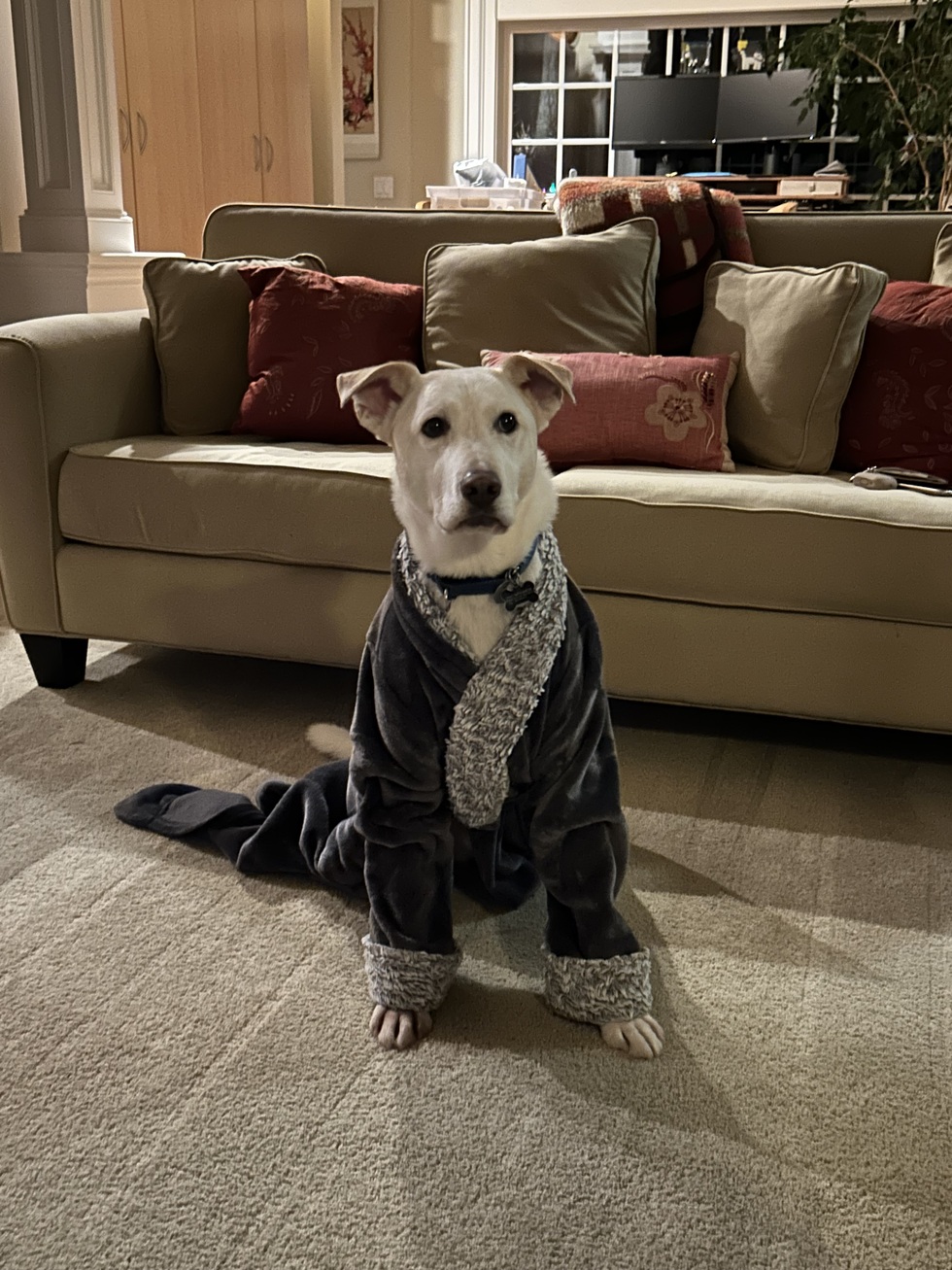 Super sweet, great buddy for everyone. Let’s anyone train him and learn new tricks. And most importantly, he is a constant companion for his human dad.