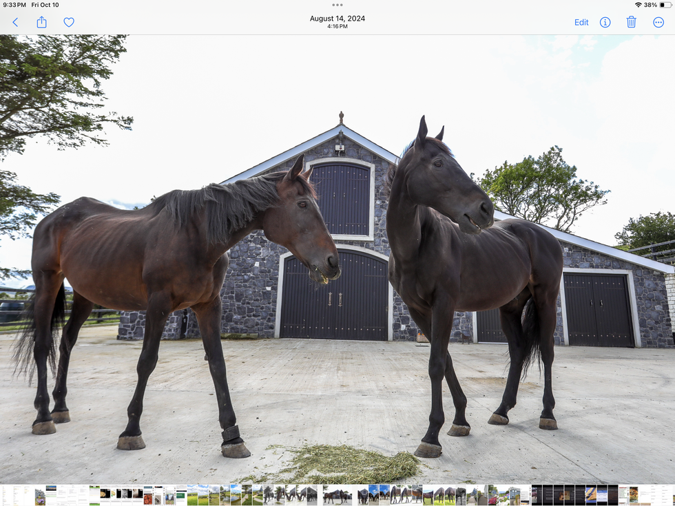 Jasmine was surrendered to SPCA and then given to a horse rescue. She came from a bad situation and ended up with back injuries that prevented her from ever be ridden. I adopted her with the understanding that she would never be ridden. D’Artagnan is an off the track thoroughbred who ended up in a lesson program being used as a jumping horse. A tendon injury ended his lesson career so he came to me where he is no longer ridden. They both now have a barn to sleep in and spend their day grazing on 40 acres, which they share with sheep, ducks, chickens, cats, dog and fish.