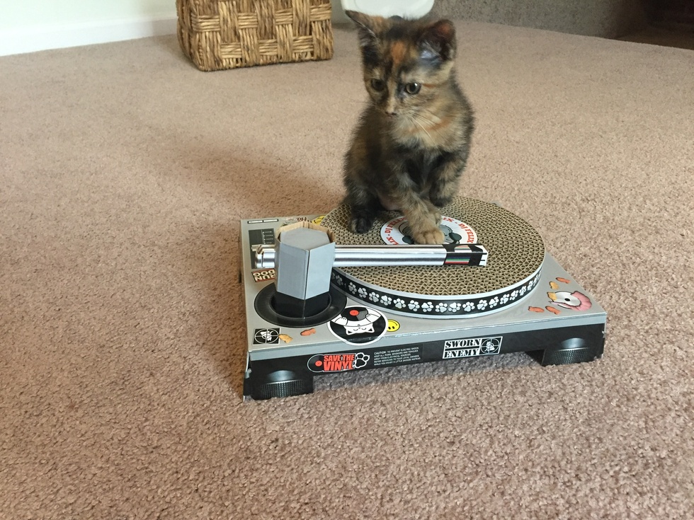 Tell us about your pet and why they should win!Torti can mix those cardboard beats like no one else’s cat!