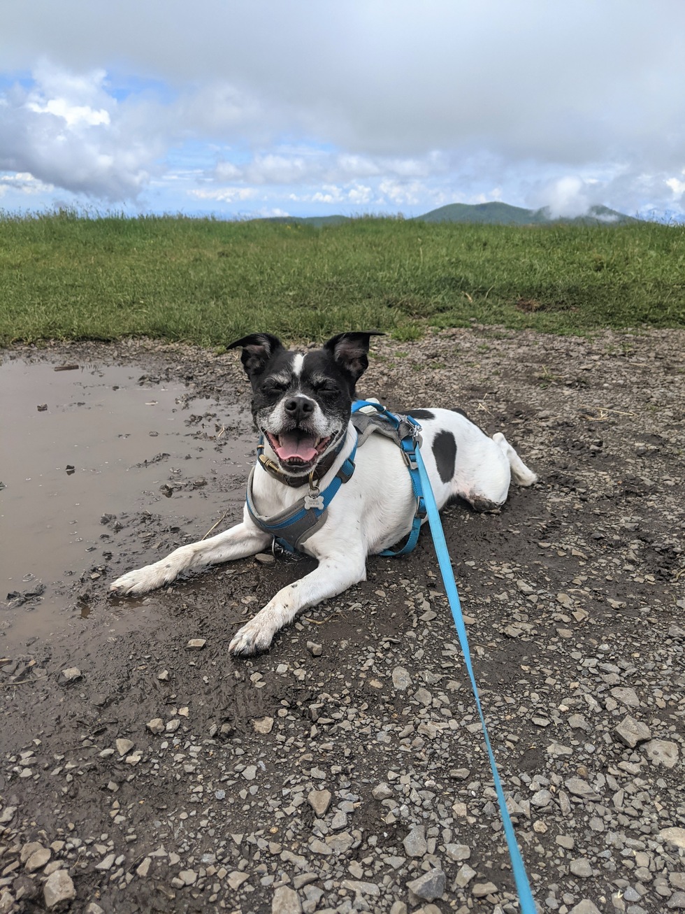 Tell us about your pet and why they should win!I adopted Charlie from the Humane Society in April 2020. He had been given up by an owner who lost their job, and then unfortunately ended up for two weeks at a house that didn't quite understand his high energy, people loving personality. Luckily, we were a perfect match. Mid-pandemic, this pup became my best bud. Charlie has SO much personality - he is incredibly intelligent, LOVES tennis balls and tug of war, and appreciates a good nap burrowed under a blanket. We quickly bonded, and have gone on so many adventures! Pictured is a recent hike to Max Patch where we stopped at the top for a few pictures and a cool off in the mud :) I cannot thank HSC enough for bringing Charlie into my life.
