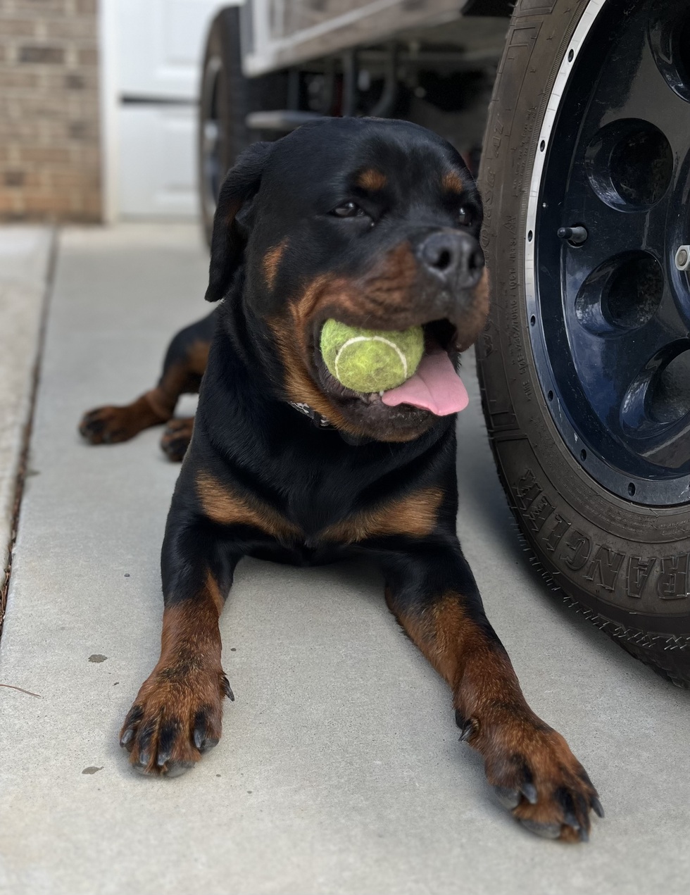 Tell us about your pet and why they should win!We rescued Harley Quinn through Rottweiler Hearts Rescue in August of 2022. She was a stray pup at only 4 months old and never claimed. We fostered her for the rescue, and that failed! She is now 12 months old and the light of our pack. Loves to play ball and loves to eat. Listens well and learns commands fast! She is the smallest of our pack but growing rapidly! She is now living her best life with her 2 sibling pups.