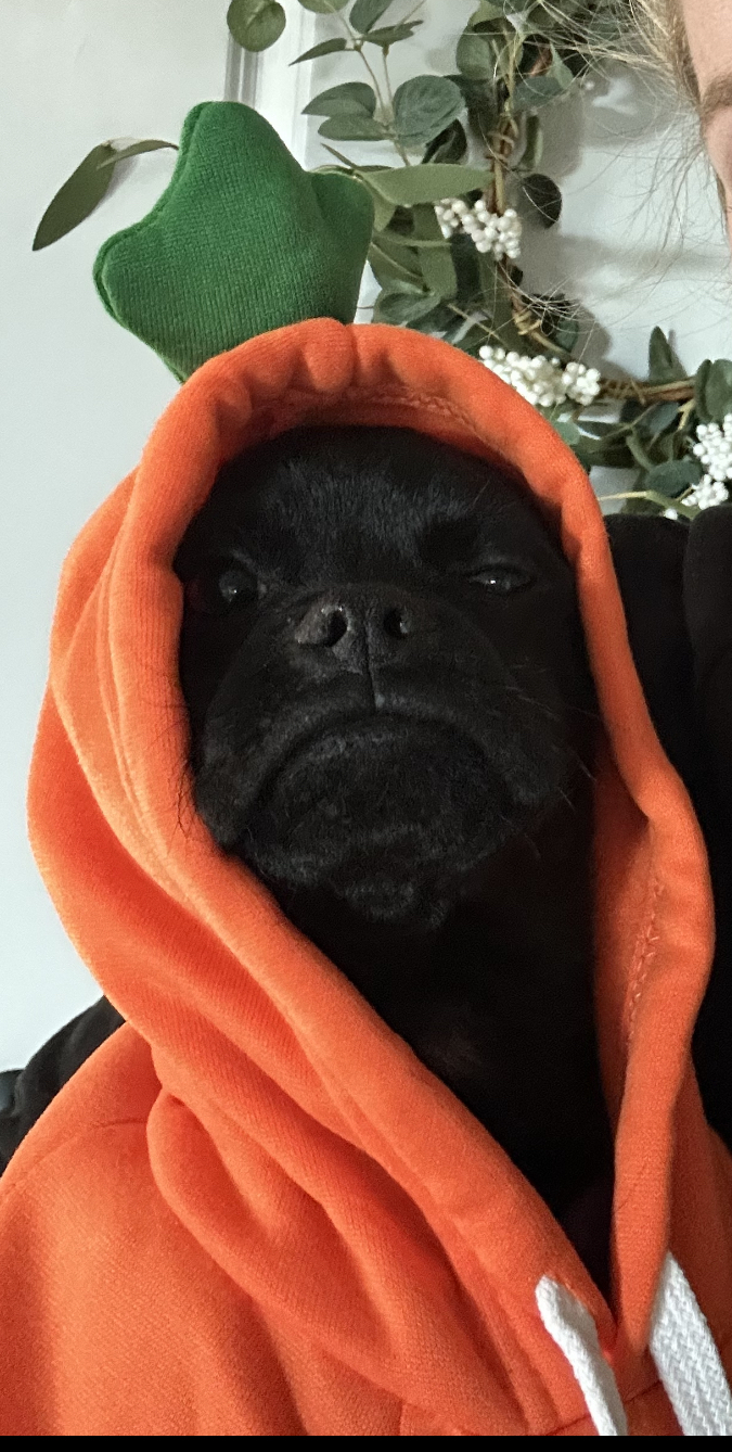 Tell us about your pet and why they should win!Lenny is a chihuahua pug mix, a chug. He is giving his best tough guy look so that you may not notice he is wearing a carrot costume. He was rescued in Texas and he travelled to WA state to avoid a kill shelter. I was supposed to foster him but I ended up adopting him within 24 hours.