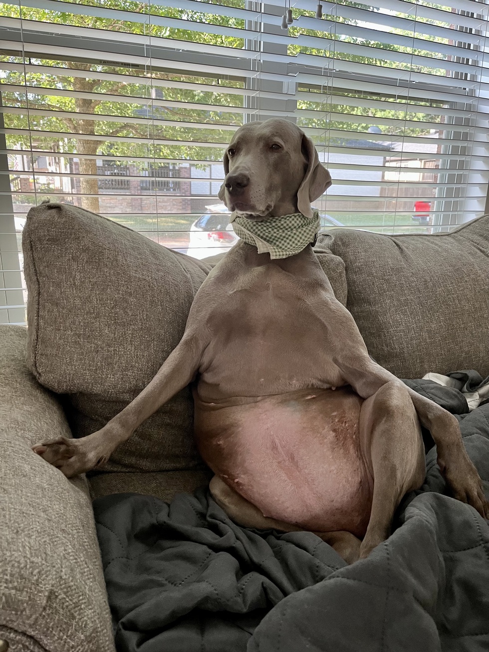 Sweet Annie girl spent the first nine years of her life on a farm breeding Weimaraner puppies until she was adopted in 2021. She is now living her best retirement years in NoDa, snuggled up on a comfy couch and getting all the belly rubs. She is the happiest, spunkiest, and sweetest pup with the biggest heart.