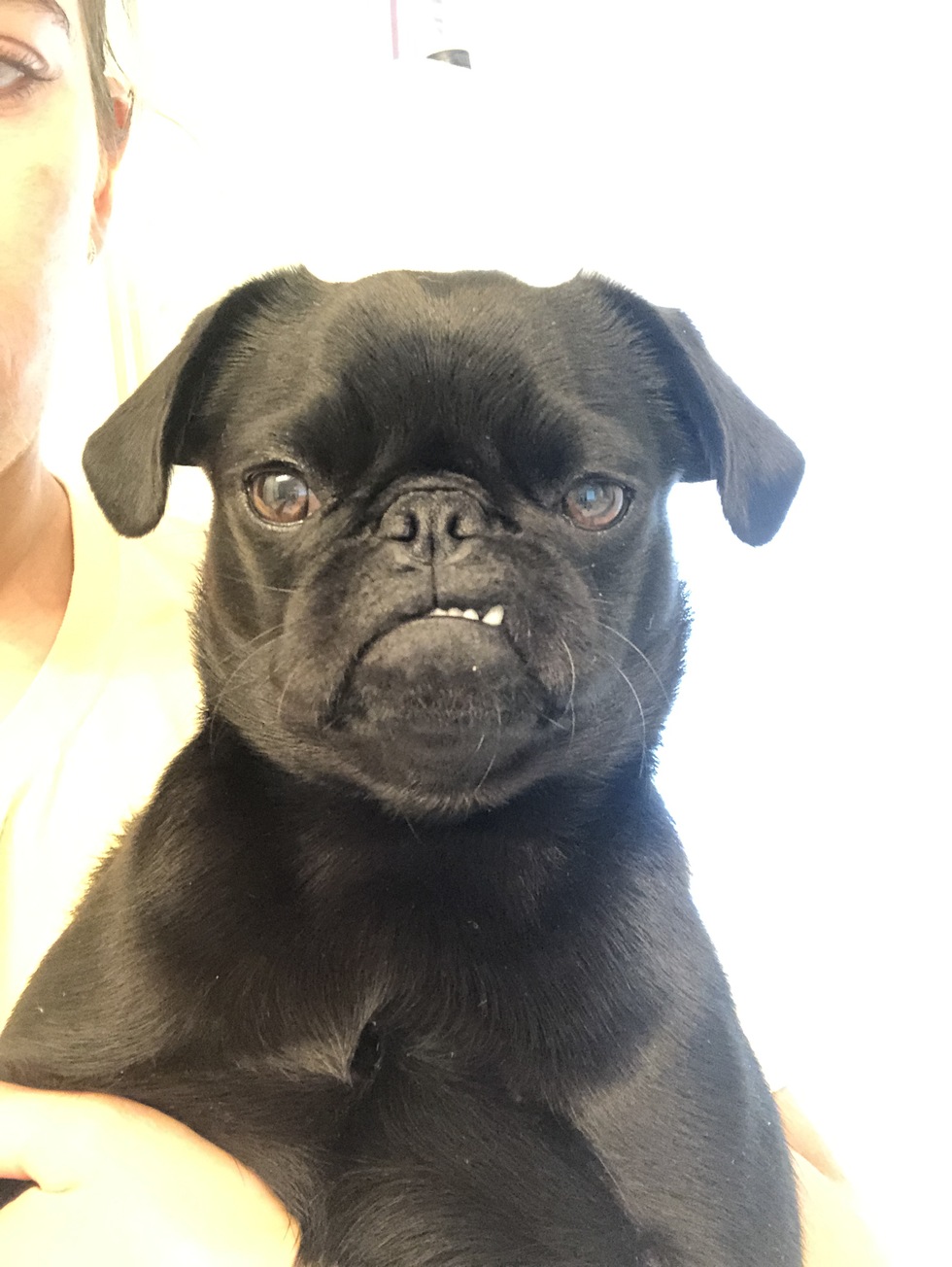 Angela loves to pawwty! She’s mean muggin and beer chuggin. Her personality is even bigger than her bottom teefs.