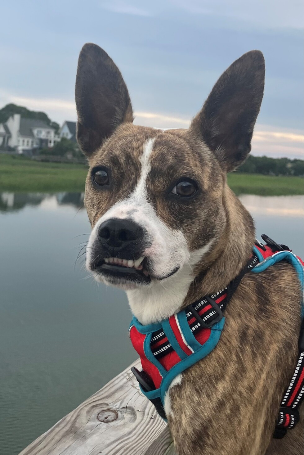 Tell us about your pet and why they should win!Jovie is a rescue from an overcrowded SC shelter. She is a boston terrier/cattle dog mix and enjoys paddle boarding, beach time and hanging out at the local dog bar socializing with friends.