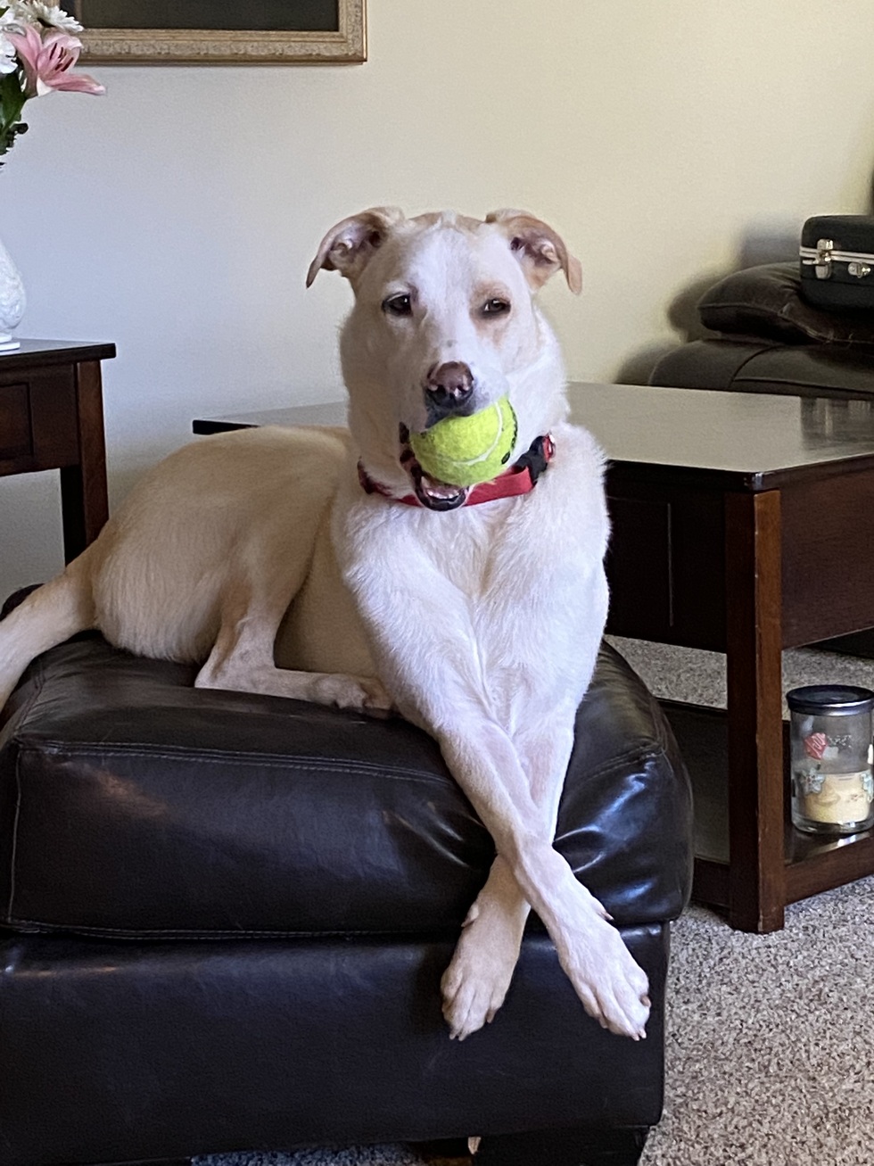 Lizzie loves catching and chasing a tennis ball. And she’s not afraid to tell you when it’s time for dinner. Most of all, she is just a great friend.