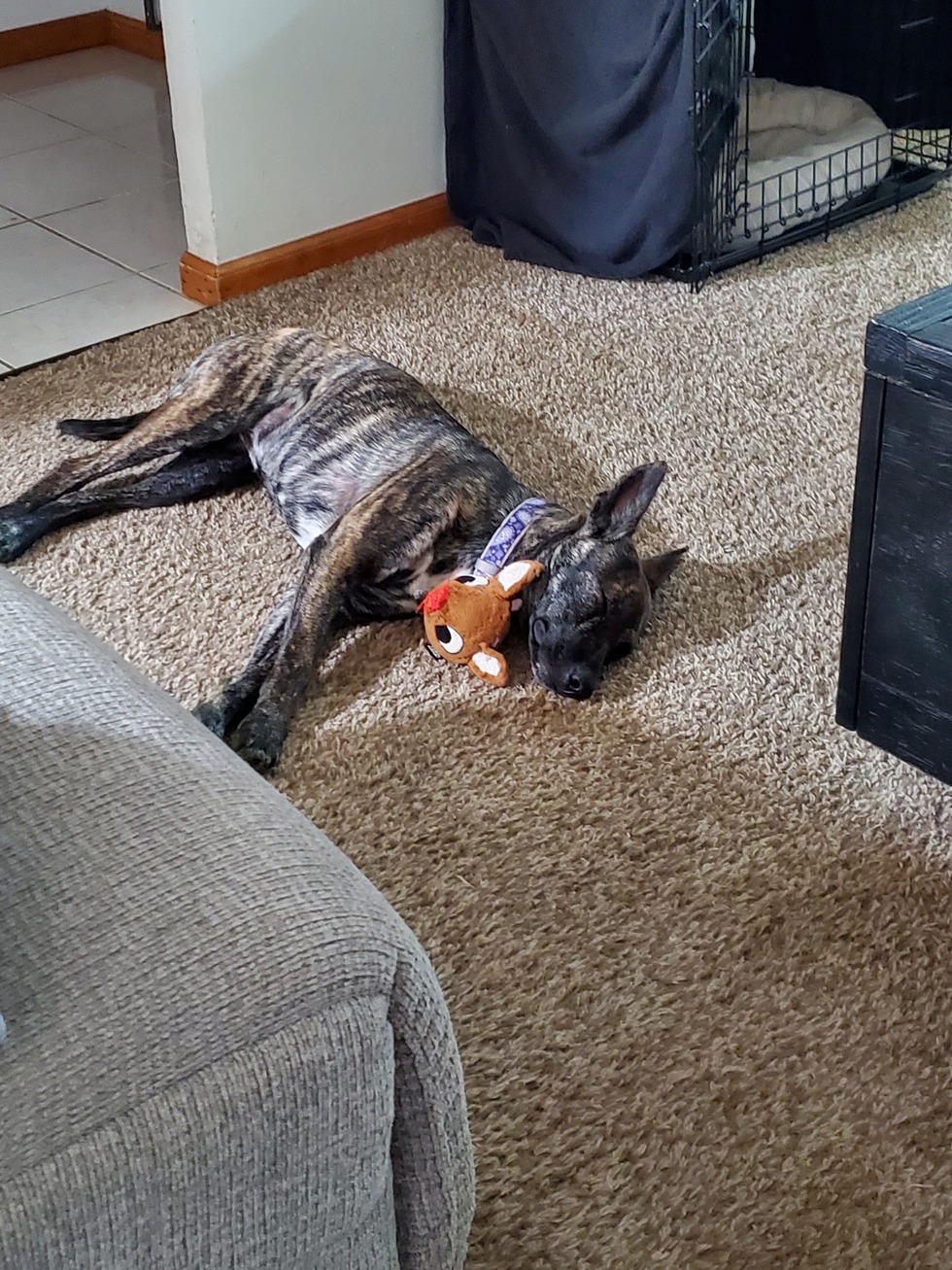 Coco is a ball of energy that loves to snuggle, her toys, and her food!!