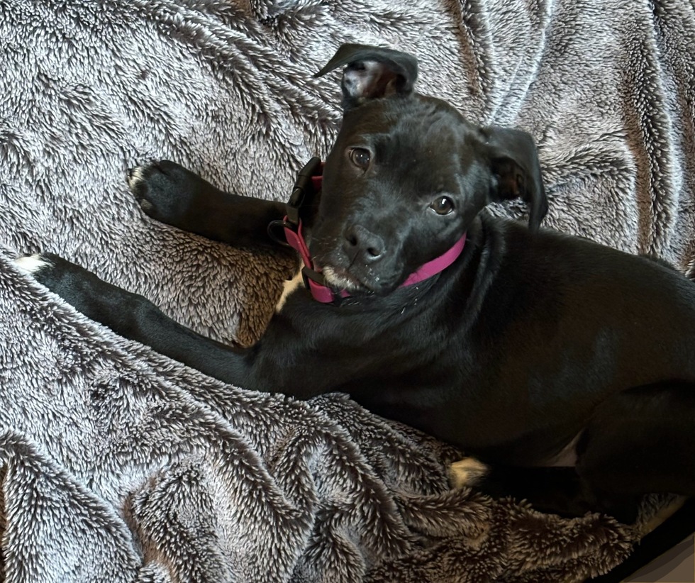 Cora is a 1 year old Pitbull Goldendoodle mix. She loves car rides and playing chase. Cora is the smartest goodest girl.