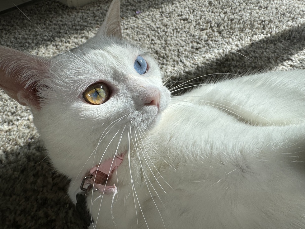Mizuki, also affectionately known as Miju, was rescued as a kitten from the streets of the Philippines. She’s shy when you first get to meet her, but once she’s comfortable she transforms into a playful, spunky, independent little creature with lots of love to give. She loves soft blankets to knead on, watching mouse videos on youtube, and most of all, any Churu style treat!
