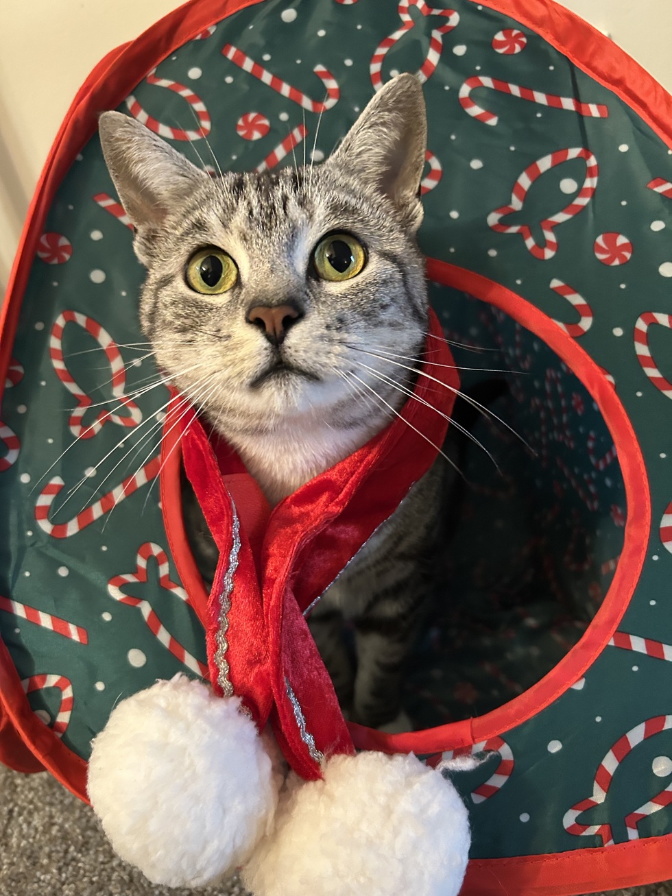 Misty is a full of energy, spunky tabby who likes to give sass, talk a lot, and never turns down pets or cuddles.