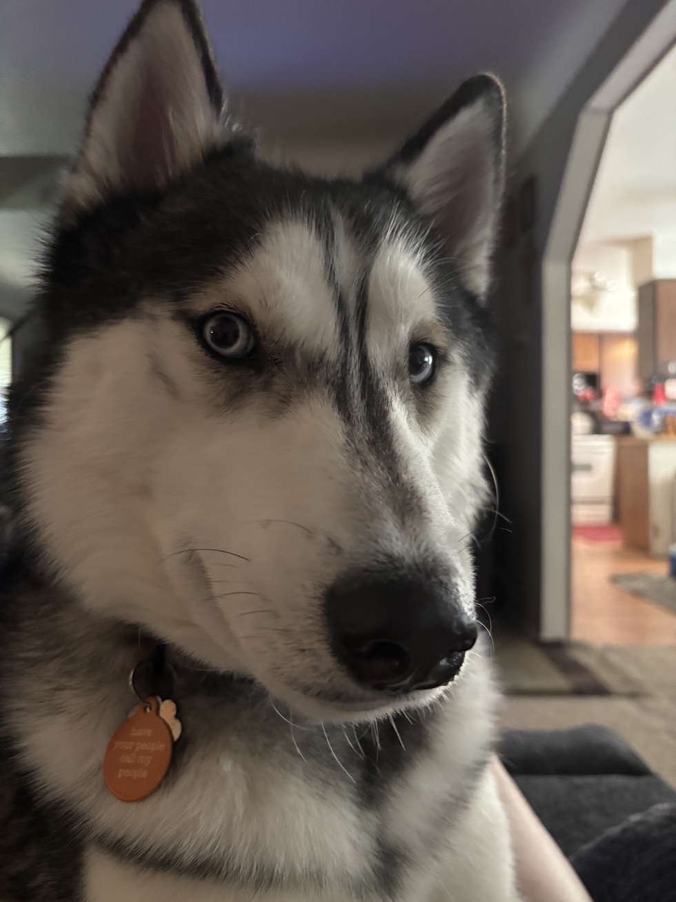 Kylo is a 19 month old Siberian Husky. He loves being outside talkin’ smack and playing with his fur brother Nikko! He often thinks he’s a lap dog and tries to “sneak” on my lap!! His Gotcha day was March 6th 2024!!