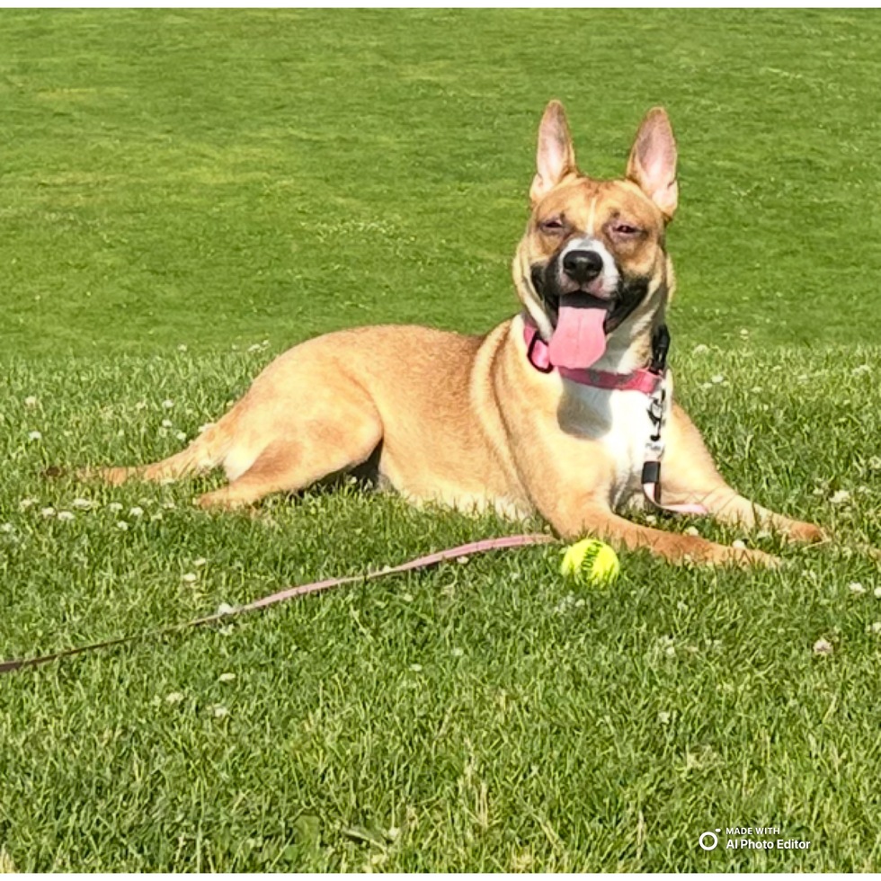 Hello! My name is Lyra! I’m a 1 year old Sheppit (German Shepard/pit) I absolutely love people and attention! I’m always wanting to play especially with a ball! I have love urges so you will always find me with a sock in my mouth just to bite down on! I’m at my happiest playing with my 2 pup cousins that live with me. Thank you for checking me out! I have all the moochies you want!