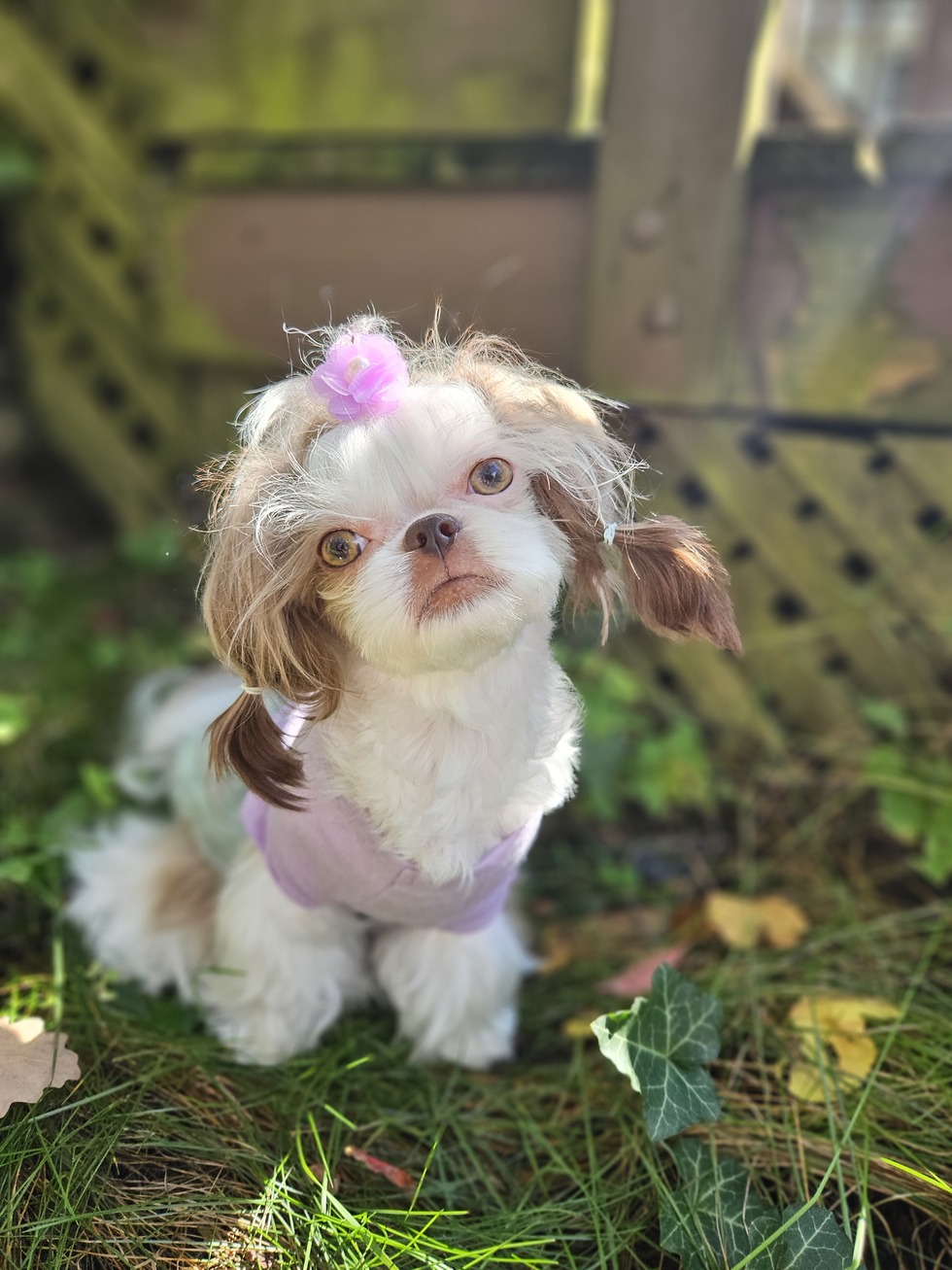 Kitty is a 1 year old, 5 lbs shih-tzu. Don't let her size fool you though. She has enough spunk to keep up with the big pups. Her favorite things to do are playing fetch for hours, going on fun adventures, and following mom around the house.