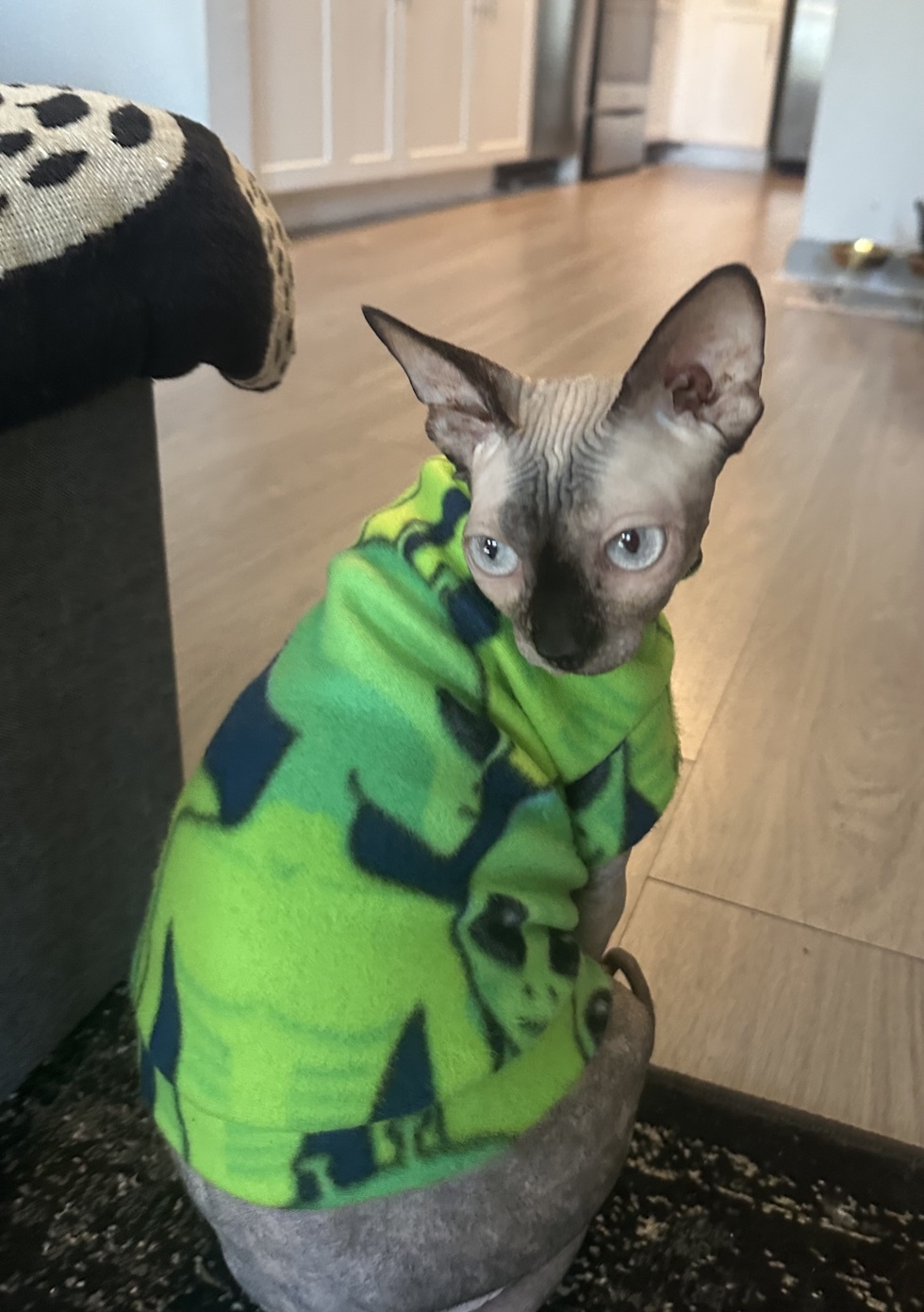 Hello! My name is San, and I may not have a lot of fur but I have a lot of love to give. I love to eat and nap with my mom, who works at HSP.