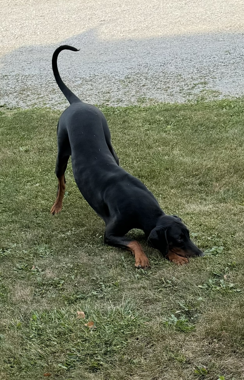Brigg’s motto is “let’s play” and his nickname is “Tiggadier” because he has springs on his bottom and sees life as “fun, fun, fun, fun, fun!” It’s great to see people’s reaction when they find out he’s a Doberman - his goofy nature makes friends everywhere he goes. He loves Nose Work and successfully competes in the Midwest.