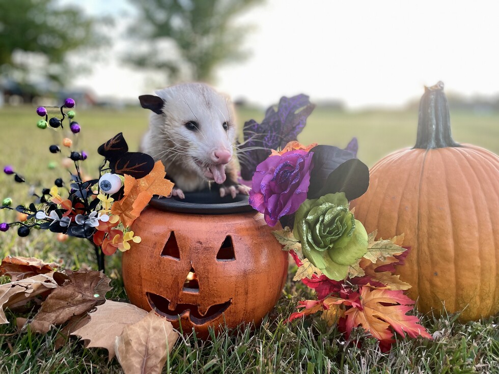 Fluke was discovered after his mom was hit by a car while he was in her pouch! He now works part time as an educational ambassador animal for Werling Wildlife, where he educates groups of kids about native Indiana species. His favorite foods are chicken nuggets and blueberries and his favorite hobbies are napping in hammocks and running on his wheel. He hopes that if you ever see a "cat" on the side of the road, that you'll stop to check if there are any orphans in her pouch that could be saved like he was.