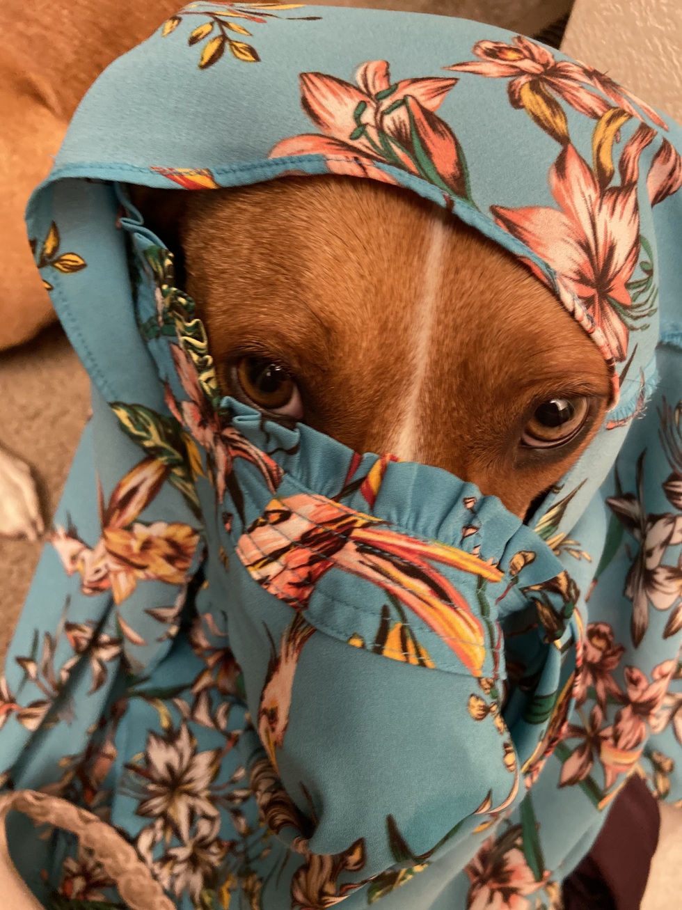 Your Pet's Bio/StoryGinger was adopted in 2017. She did not know how to go down stairs or play with toys she is still afraid of anything dark and deep. She is the most mysterious, mischievous and loving dog we have ever had.