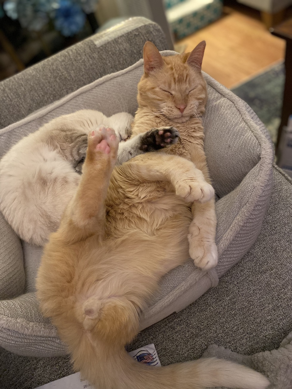 Your Pet's Bio/StoryBuddy is 17 and Prada is 16. All three of my cats were adopted at the same time. Both Prada and Buddy have kidney disease and Prada has an autoimmune disease as well. Both are also cancer survivors. Buddy had his leg amputated at the very young age of 5. Even though he is a “senior citizen “ he gets around amazingly with many adaptations for him to get up and down. Prada likes to climb up high on everything and still has the fastest and craziest zoom zooms I have ever seen!