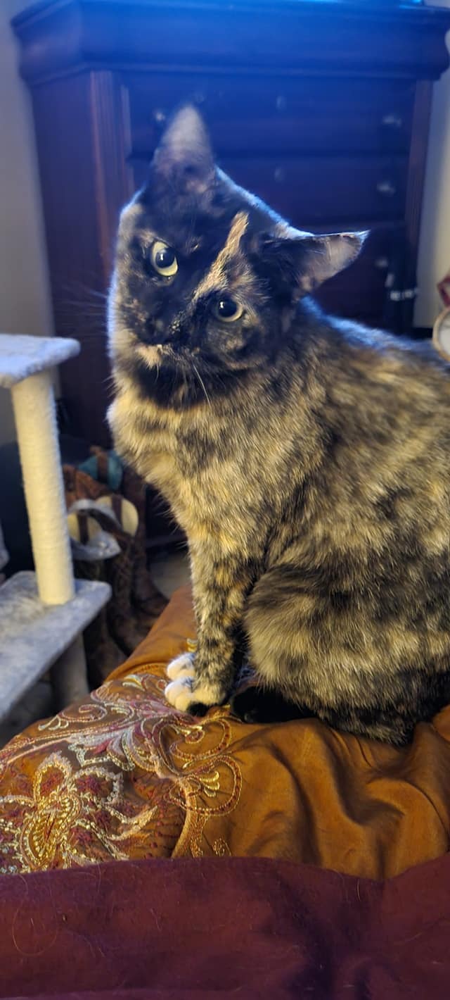Your Pet's Bio/StoryKatya was a neglected stray cat. She roamed a neighborhood in North Denver and was often seen bloody and beaten up. Katya had 2 liters of kittens that we know of and was rescued by friends who fostered her while looking for a permenant home. Katya has healed from her injuries; she is my best friend and is my emotional support animal. She is very sassy and spoiled now and if she doesn't like something she makes a barking sound as if she is complaining at me about a problem; or, if I am gone and she misses me because she is always by my side at home. I feel like she could talk english if she wanted - but she has developed boundaries that limit her emotions and abilities from being a street cat, so for now, I speak cat.
