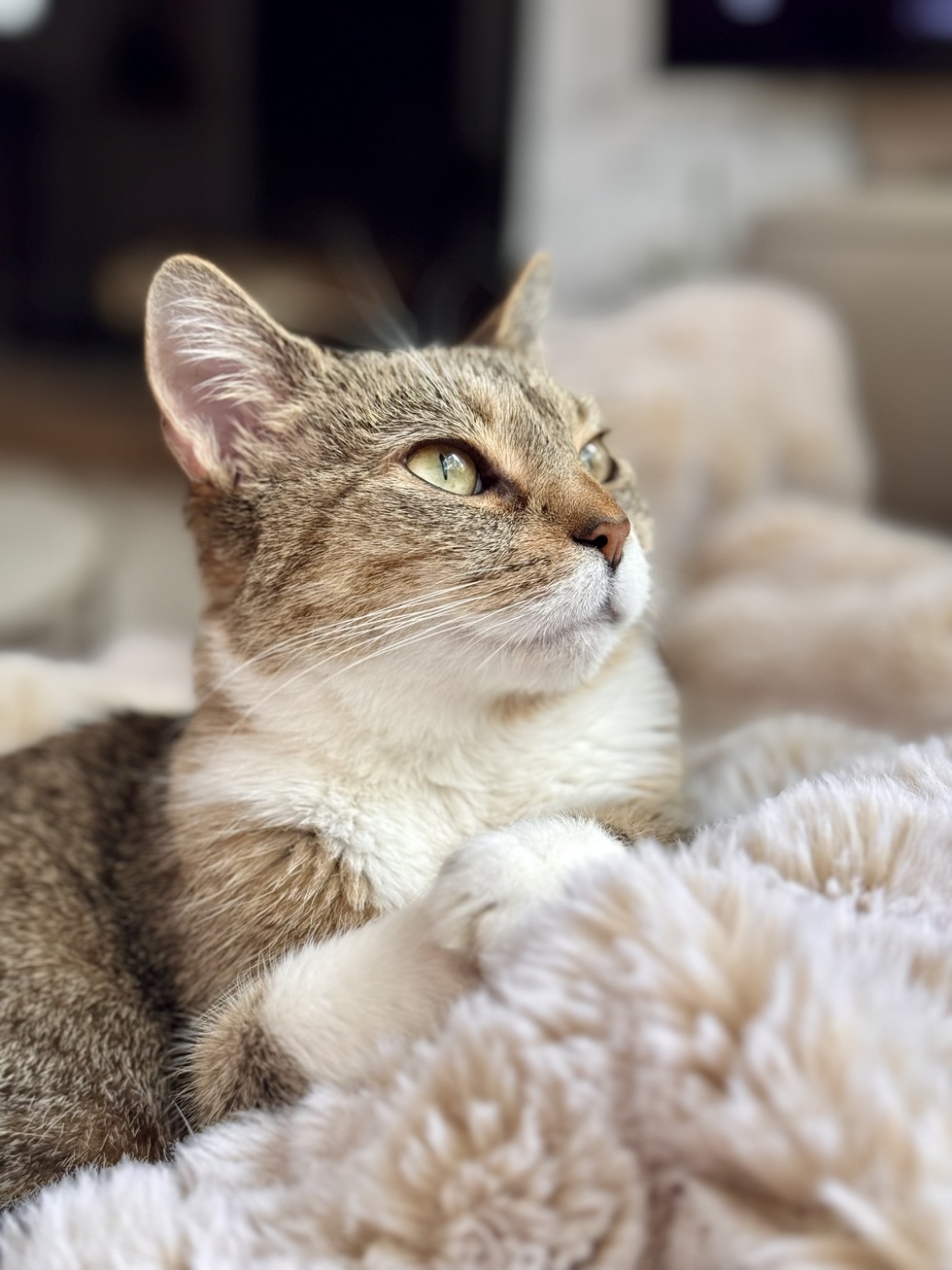Your Pet's Bio/StoryMaddy is a tiny mama cat who lived on the street and ate table scraps for a few years until she made her way to the shelter. Her human was looking for two kittens but fell in love with her instead. Alert and anxious, she still quickly trusted her new human and settled into her new life of luxuriating indoors. A fiercely protective, loyal and sweet kitty, Maddy truly gives meaning to the question “who rescued who?”