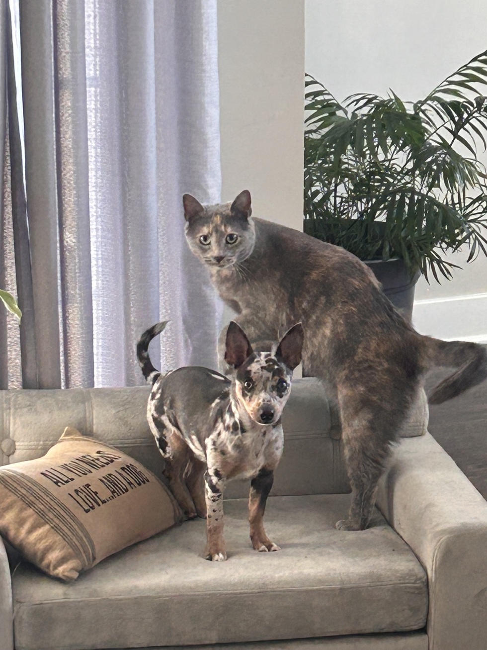 Ashlyn (cat), formally Charlotte, was adopted at HSAC back in 2024. Here she is with her new baby brother, Niko. Who said cats and dogs can’t get along?!