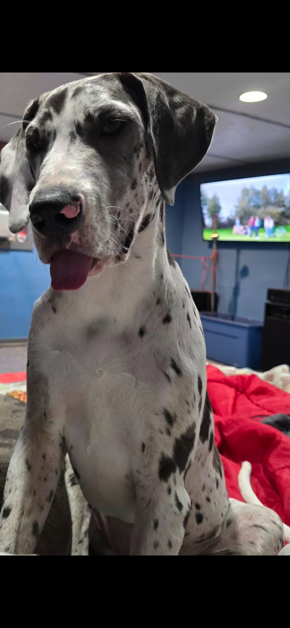 My name is Kionni Kai. I am a Harlequin Great Dane and I'll be 2 in April. I was one of 10 puppies. I love car rides to far away places, walks until my human gets tired, playing with my siblings and humans, snacks of any kind, and pup-cups. I am extremely energetic and run around like a maniac but get when I get tired, I have to take alot of cat naps cuddled up with my human and siblings to recharge. Please vote for me because you can't deny I'm literally the prettiest girl you've ever seen!🥰💜🩷